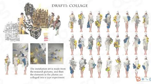 当时我出作品集要求一共需要四个主题,就想日记一样把从最开始的灵感来源到最后的成衣拍片都是需要相信的记录排版到作品集里面。