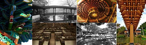 我通过从图书馆和网上获取文字和视觉资源,以及实地考察,对中国古代木结构特别是苏州园林及其榫卯结构进行了研究。当代艺术家傅中望和李春祥的作品激发了我的组合方式。结构主义和解构主义的建筑技术也影响了我的展示方式。