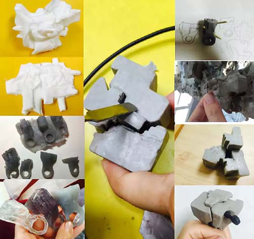 为了解决水泥的脆性问题,我尝试在混合过程中加入不同的材料,最后发现添加一定比例的胶水,面粉,抹布和头发可以增强成品。