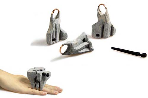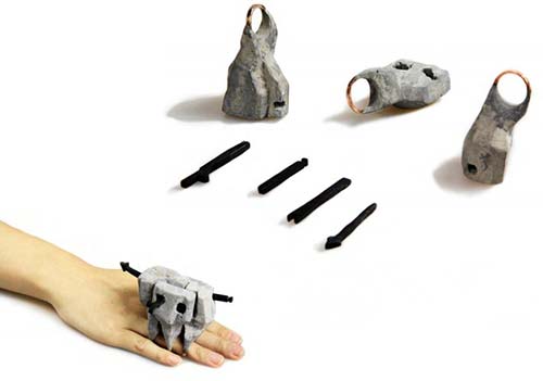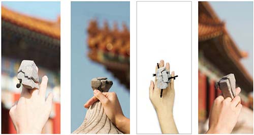 根据佩戴者的不同,每个系列可以用作大环,或者分成三个单独的环,或者将两个部分组合在一起。佩戴者的手指成为榫卯工作的一部分,进一步阐明了个人与整体之间的关系。