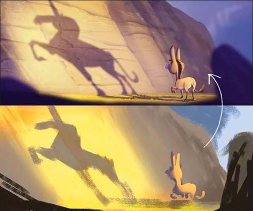 在决定最后一个之前尝试不同的变化。考虑一下情绪,问问自己,你想用你的作品说什么?可爱或浪漫的作品与阳光明媚,背光的魔法小时灯效果很好,而黑暗,坚硬的阴影可能更适合指示危险。研究电影的颜色脚本,看看工作室是如何解决某些情况和情绪的。如果要创建逼真的照明,使用实际照片作为色彩的基础也很有帮助。