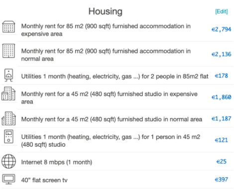 与巴黎生活成本相似的城市