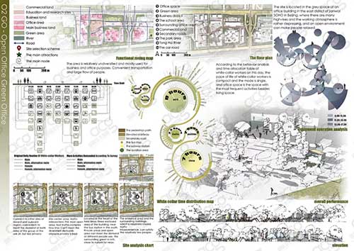 赵同学图形视觉美感很好,对空间、环境的专业理解方向也比较准确,对抽象概念的理解到位。作品集的制作过程,主要集中在结合项目的相关专业拓展以及专业知识点与项目的融合度方面,例如:城市规划中有关街景的视觉体验的矢量化分析;在职人口都市病的纯艺化表达;建筑形式的常规化突破,即实验性、边缘化;结合城市文脉与游憩学的新型活动方式在场地空间设计的实践等。
