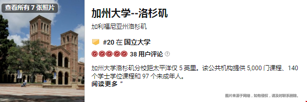 2018USNEWS加州大学洛杉矶分校排名:第21
