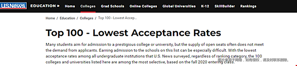 全美录取率最低的100所大学――数据来自US.news官网