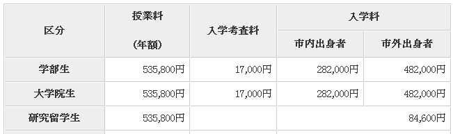 入学金:本科与修士都为:33.8万日元(2万元人民币)
