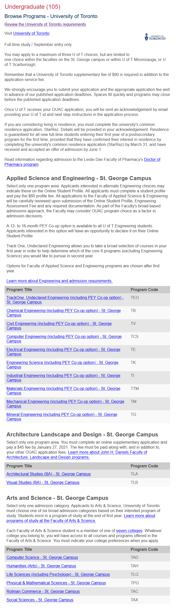 OUAC几乎能处理在安大略省的所有21所大学中本科课程,医学院,法学院,教师教育和康复科学课程的申请都可以在OUAC上进行。