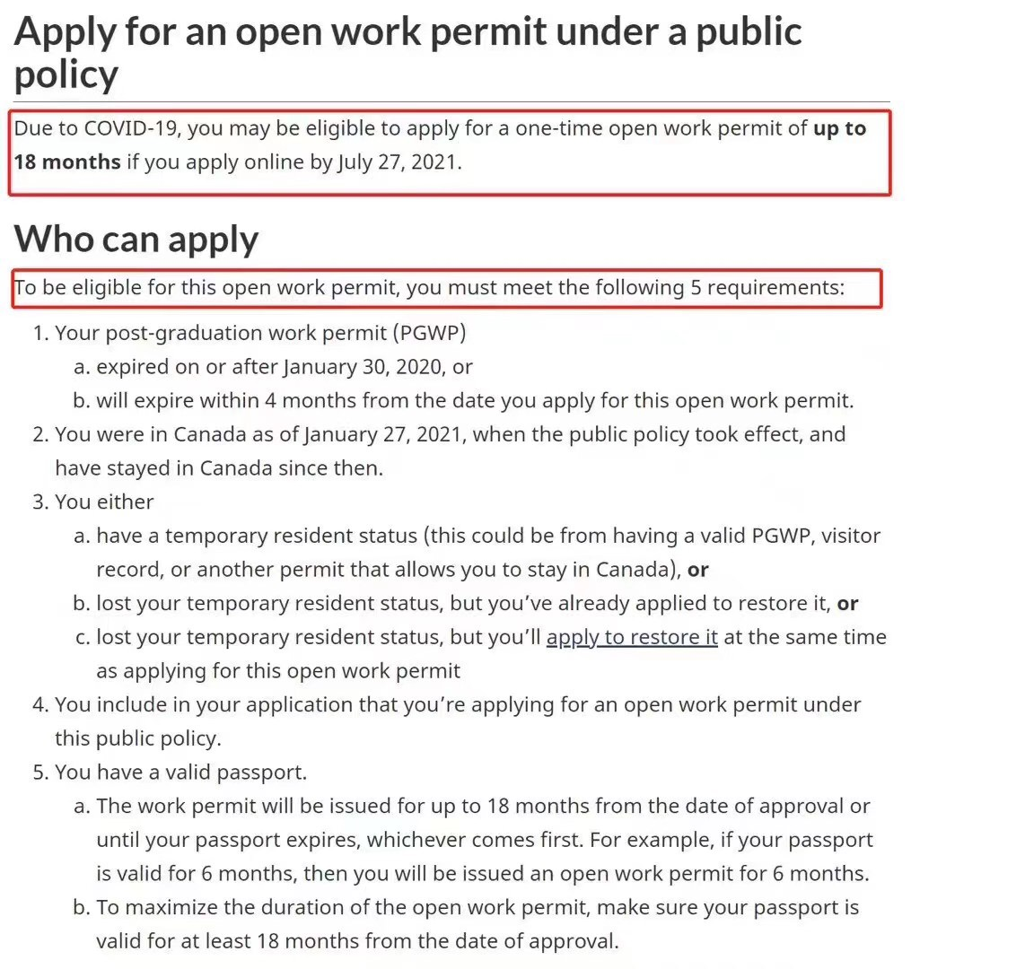1. 您毕业工签(PGWP) 于2020年1月30日或之后到期,或自您申请此工签之日起4个月内到期。
