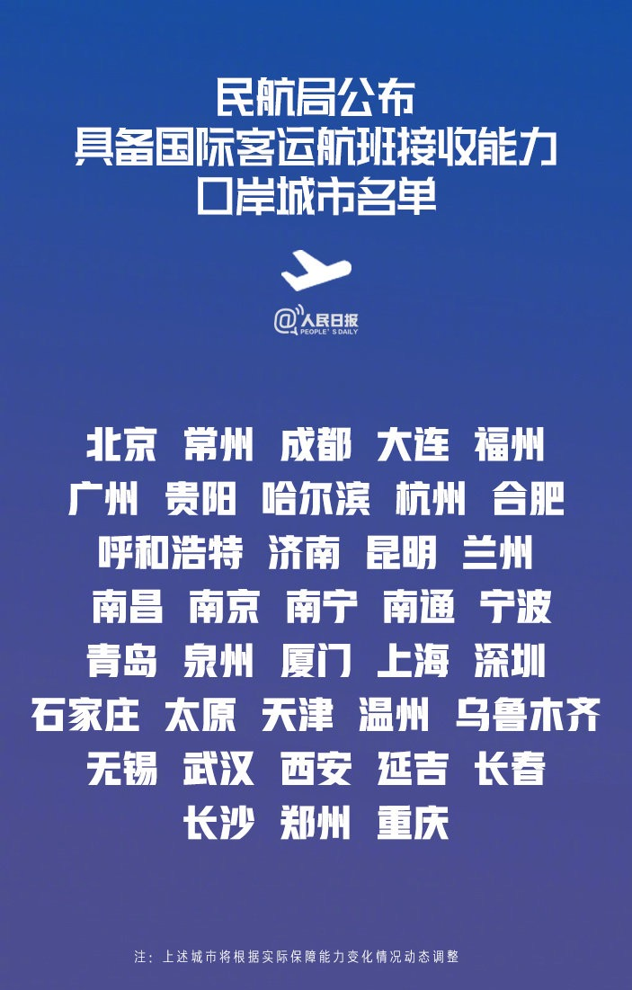 民航局的通知还提到,具体城市名单如下: