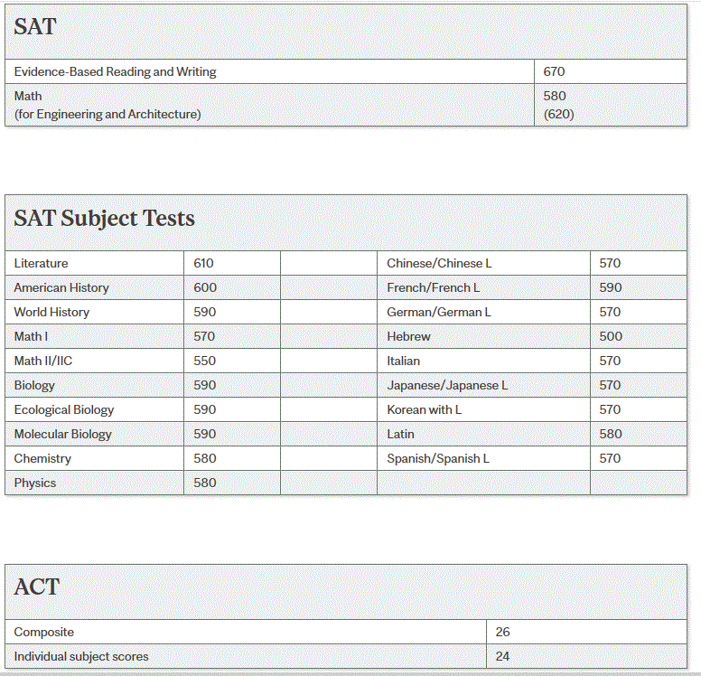 值得注意的一点是,学生在2021年秋季入学的申请中,如果没有参加或者选择不提交SAT和ACT成绩,在录取审理中不会受到劣势对待(工程学院的申请者除外)。这一点是今年新修改的。