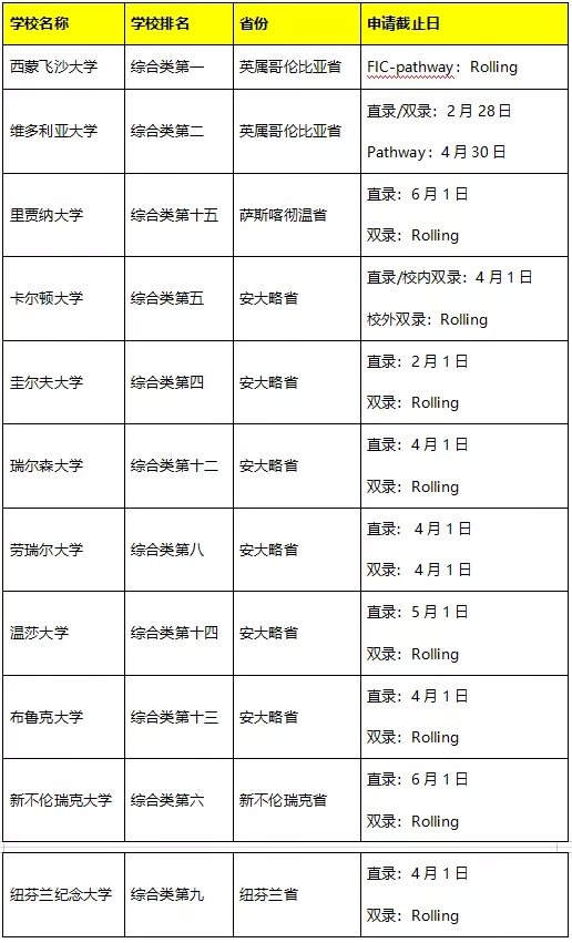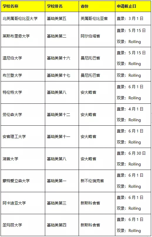 *各学校部分专业截止日期后如有余位,仍可继续递交申请,部分热门专业也有可能提前招满关闭。以上信息仅供参考,请以官网更新为准