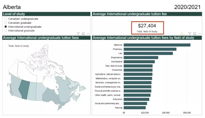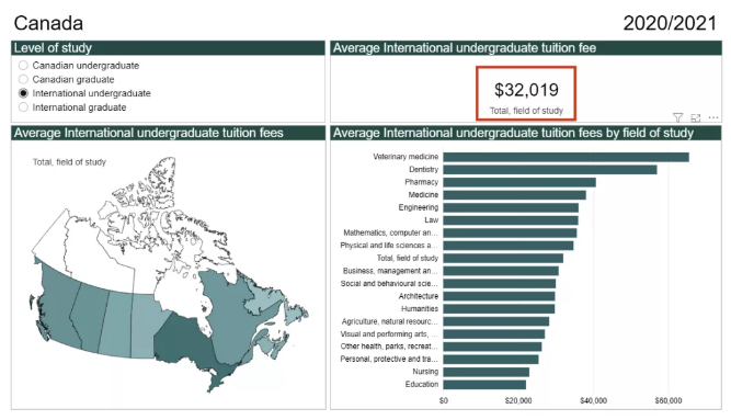 加拿大本科及研究生留学生2020/2021的平均学费及各专业的费用