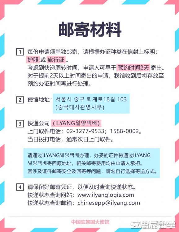 1,邮寄材料一定要按照使馆要求!!!邮寄之前一定要再三确认,防止被退件,导致重新办理,耽误时间!!!