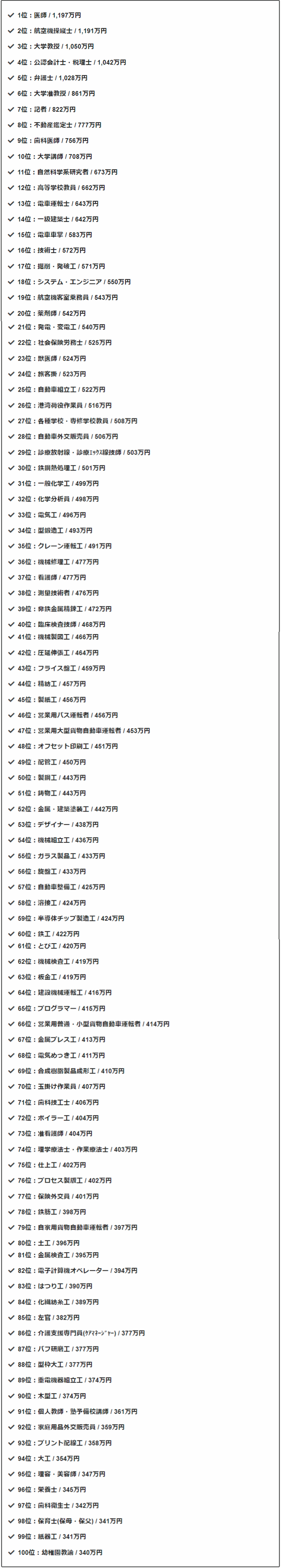 这是在日本收入最多的100个职业,相信不会日语也能看懂。