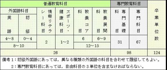 介绍看护学专门领域、为导入博士课程准备的专门科目和以此为基础的专门基础科目,构成了“专门教育科目”;此外还有为了培养看护学工作中必不可缺的人际理解能力、科学判断力以及解决科学问题能力设置的“普通教育科目”。