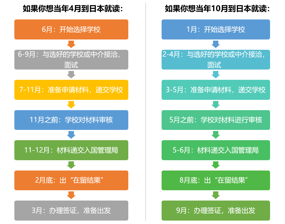 语言学校开学时间为每年的1月、4月、7月、10月,其中4月和10月这两次招生人数最多。语言学校基本上也是申请日本本科留学的必经之路。