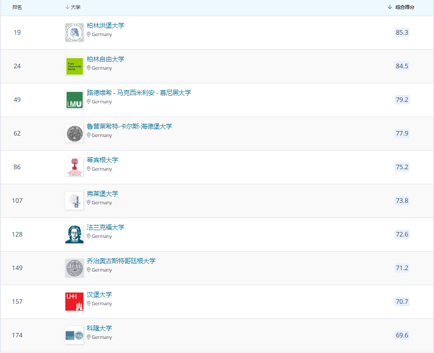 其中,柏林自由大学上涨最为明显,超过去年德国排名第10的哥廷根大学。