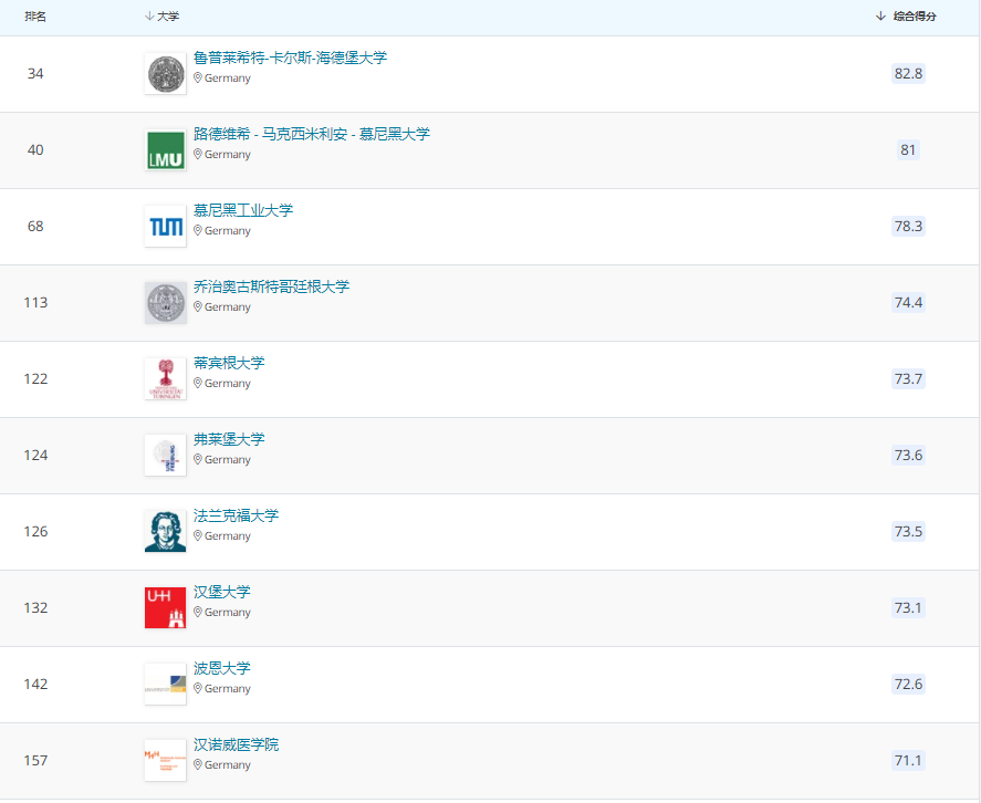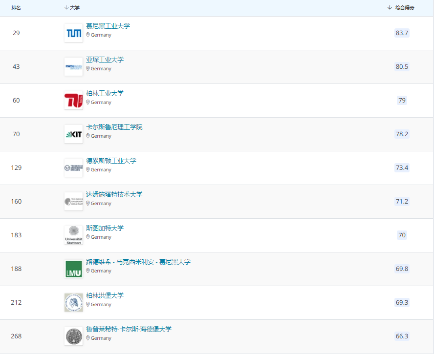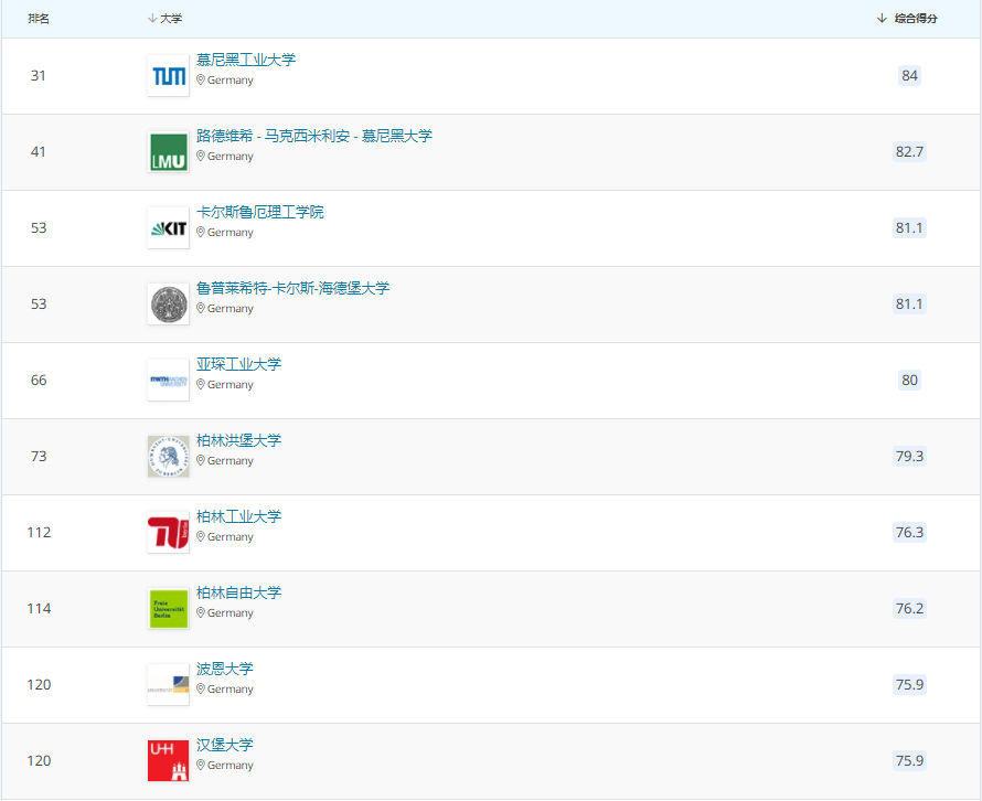 好勒,了解完排名方式后,接下来就是重点啦,本次德国大学学科排名的情况。