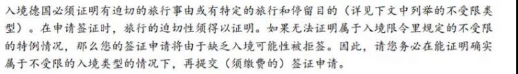 入境德国必须证明迫切的旅行事由或有特定的旅行和停留目的。在申请签证时,必须证明旅行的迫切性,否则会被拒签。