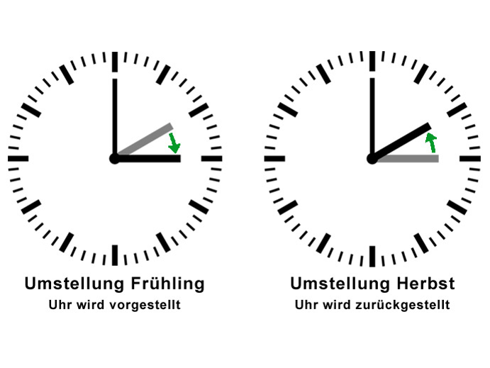 德国有“冬令时(Winterzeit)”和“夏令时(Sommerzeit)”之分,每年会进行两次时间上的调整。3月最后一个周日会将时间拨快一个小时(从凌晨2点拨至3点),开始夏令时,与中国的时差变为6小时。10月最后一个周日则会将时间拨慢一个小时(从凌晨3点拨至2点),开始冬令时,与中国的时差变为7小时。电子设备,例如手机、电脑等会自动调时间,而手表或者普通的钟表则需要手动调整。如果3月或10月的某一天你发现自己的手表和手机的时间对不上了,想一想,可能今天就是调整冬令时或夏令时的日子哦~