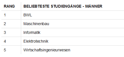 德国联邦统计局每一年都邑依据数据列出男性和女性最喜欢的专业。