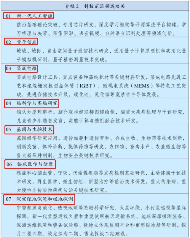 从两份纲领解读来看,科技创新将会成为未来发展的主线,So,哪些领域被国度圈上了重点呢?