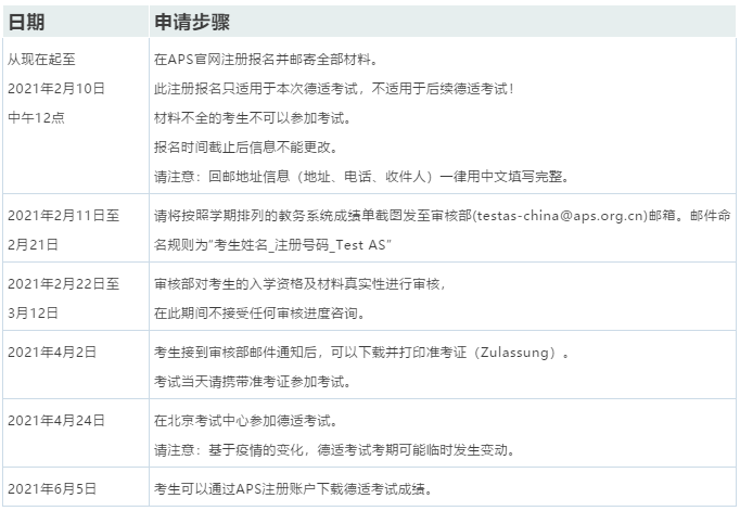 APS考核部宣告了最新对付德适磨练(TestAS)的报名要求按次,详细情况如下。