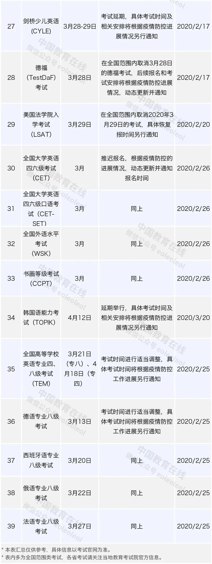 疫情残虐之下,企业推迟复工,黉舍开学时日几回再三延期,那末关于人人关注的各类磨练又受何影响?在此为各人发展了收集整理: