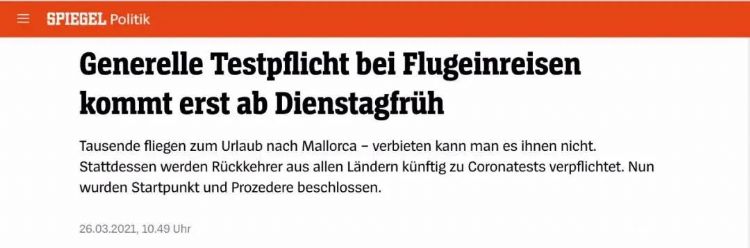 德国联邦卫生部浮现,该规画是旅客和航空公司均可以顺应的。经内阁批准,新的出境规定应在本礼拜五发表。