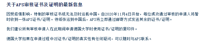固然查核部给出理解释,但德国大学不不一定什么时分能够接收到这条机要,所以不成提防的是,德国大学有可能会猜疑APS长时间证明/证书的真伪性,这时,请你再接再励劈头肢解审核部注明情况。