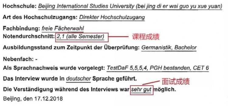 APS稽核证书作为申请学校的打门砖,目的只是检测你的学历真假。证书上面有两个造诣,一个是根据你提交的大学成绩单用巴伐利亚算法公式总计出的课程造诣,另一个是你的面谈成效,相当于对你此次面谈浮现的一个评定,譬喻sehr gut,gut笼统eingeschr?nkt. 不过证书上的两个成绩对后续的大学要求不会有太大的影响。