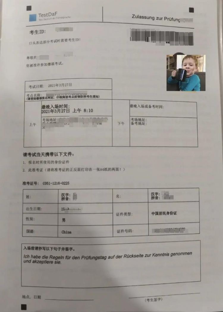 和其他考验不合,德福考试的准查验是需要自行打印的!