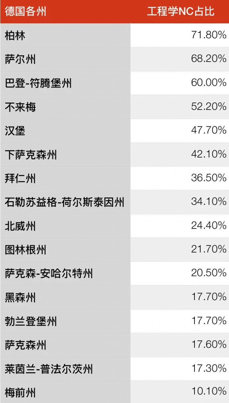 德国是联邦州制,各州都有很大的权利。关于NC专业的占比,各州也是傲娇的大不近似。