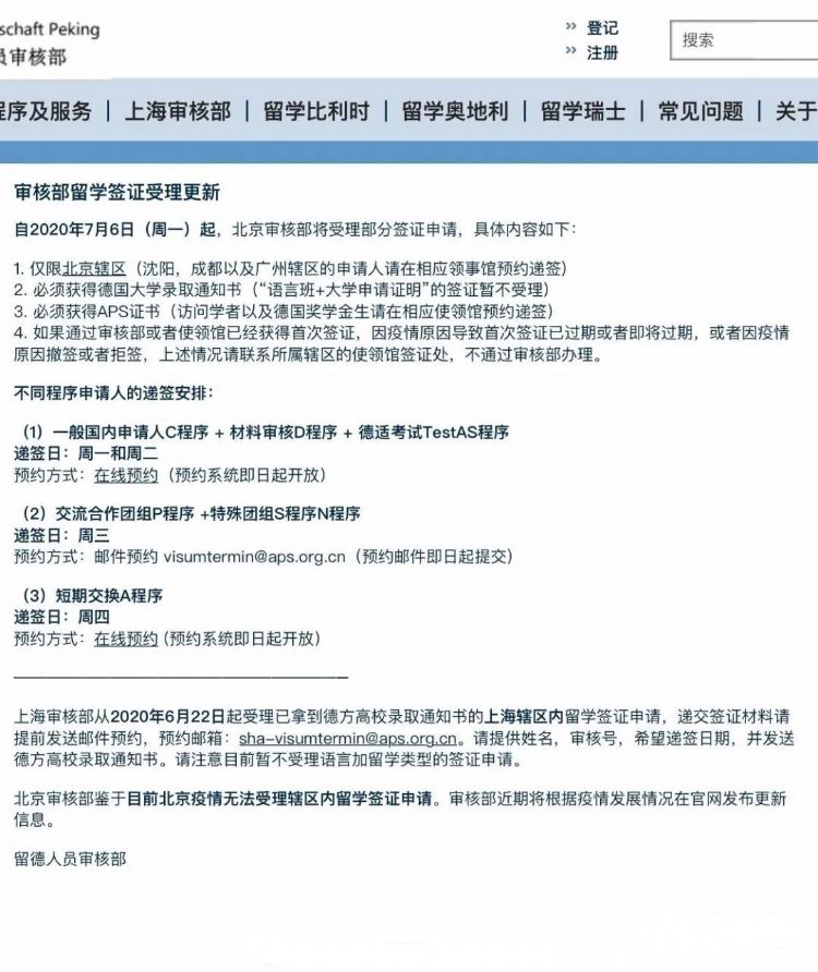 3. 必须获得APS证书(访问学者以及德国奖学金生请在相应使领馆预约递签)