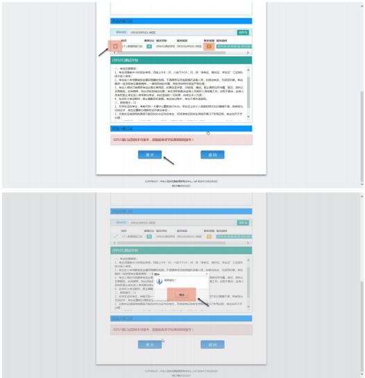 19、 页面提示确认报考信息,点击“去支付”,再次提示确认报考信息,点击“确定”: