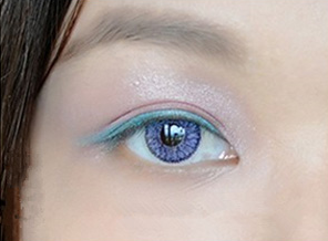 第二步,用孔雀蓝画出一道粗粗的眼线,建议在笔刷上沾点点水更好上色。