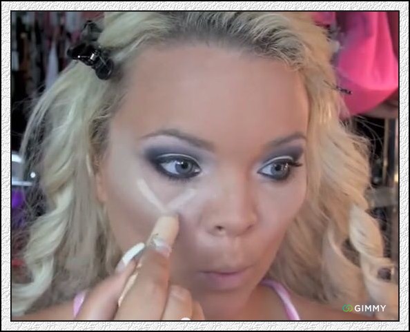 现在,面部已经基本上没有什么瑕疵了,但是感觉整体妆容还是太平太淡了,怎么办呢?下面,试试这样做:用遮瑕笔在眼睛下方画一个V字。