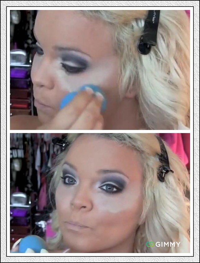 葫芦粉扑真的是美妆圣物呢!用葫芦粉扑将遮瑕膏在颧骨上方推开。均匀并晕染开。