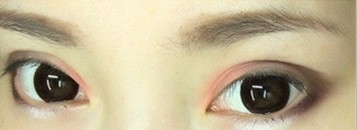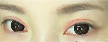 很简单的一个眼妆 主要是粉色和咖色的配色罢了,一些怎样去涂眼影前面的教程里都有 有感兴趣的可以去看一下,反正大面积的涂眼影的时候美美总是会用中指肚去涂 那样会涂的很均匀 也很好涂开 简称“傻瓜式涂抹”