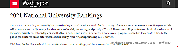 2021华盛顿月刊排名全美综合性大学排名参考因素: