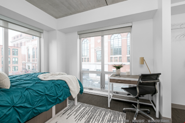 公寓单元都配备了便利设施――厨房用具、无线网络以及洗衣机和烘干机――并且家具齐全。在多人入住的单位中,卧室配有个人钥匙扣,以增加隐私。学生住户还可以使用一系列公共区域,包括健身房、屋顶露台、两个带打印机的商务中心、一间会议室和一个配有沙发、咖啡吧和其他设施的大堂。