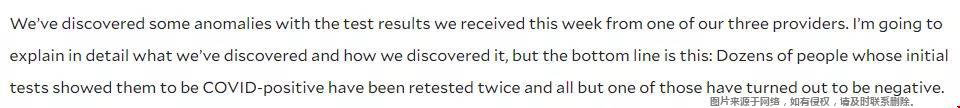 原来该校的核酸检测项目有三家不同的供应商,莱斯大学进一步与测试提供方沟通后发现其中一家供应商在没有通知校方的情况下,自己改变了他们的测试规程,这项测试规程直接决定了测试结果。