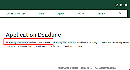 摘要:美国达特茅斯学院允许常规申请,那么美国达特茅斯学院提供ED申请吗?按照官网说明,这里截止日期在11月1日,学生可在12月中旬获得录取结果,因为具有限制性,学生需严谨考虑。下面就随Hanna老师一起看看吧!