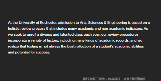 在罗切斯特大学,包括艺术、科学与工程专业的录取是基于包括许多学术和非学术指标在内的整体审查过程。由于罗切斯特大学每年都力求招收一个多元化且才华横溢的班级,因此这里的审核程序包含了多种因素,包括多种学术记录,因为考试并不总是反映学生学术能力和成功潜力的最佳方式。所以在一定程度上,也显示了未来罗切斯特大学申请难度将会进一步提升,且从以下几个方面可以看出: