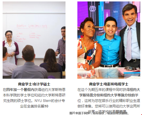 一)纽约大学商学院提供3个本科商学课程和2个联合课程,给学生提供多样选择和途径。