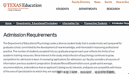 内附:UT-Austin教育心理学研究生申请需达到的要求: