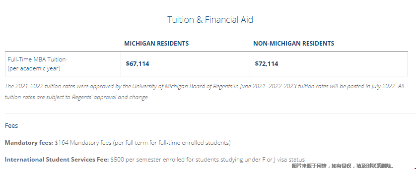 内附:密歇根大学MBA学费之外的其他费用