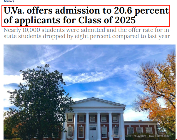 1)弗吉尼亚大学本科早期申请录取率:20.6%