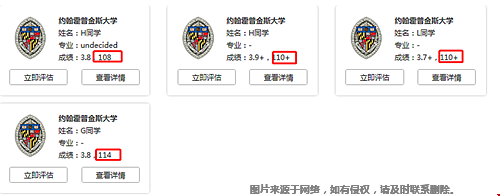 温馨提示:根据以往约翰霍普金斯大学录取案例,本科托福分数最低108分,甚至有的学生托福分数达到110以上,所以学生最好不要低于这些分数线,以免影响最后的录取结果,当然每个单项分数也不能忽略。