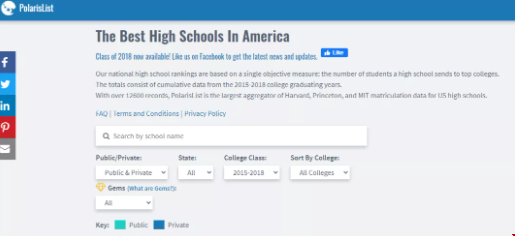PolarisList是一项在线网络服务,根据就读普林斯顿、哈佛和麻省理工学院 (MIT) 的学生人数对高中进行排名。